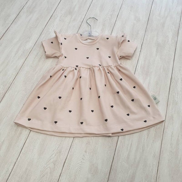Zauberhaftes Kleid für Mädchen in zartem rosa mit schwarzen Herzen in der Größe 80