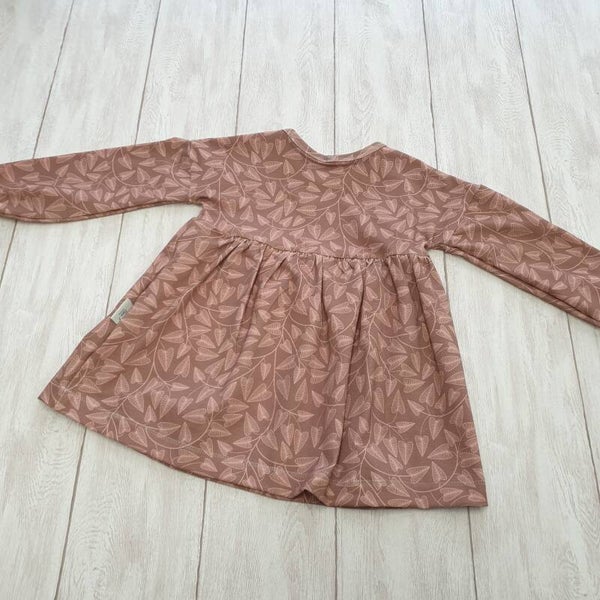 Die herbstliche Tunika hat ein tolles Blättermotiv und ist aus Jersey genäht.
