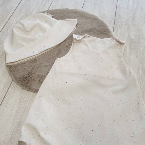 Kurzer Unisex Strampler mit kleinen Pünktchen in der Größe 68